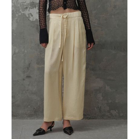 ウエストはゴム仕様で、ステッチワークが施された太幅の共紐がデザインポイント。