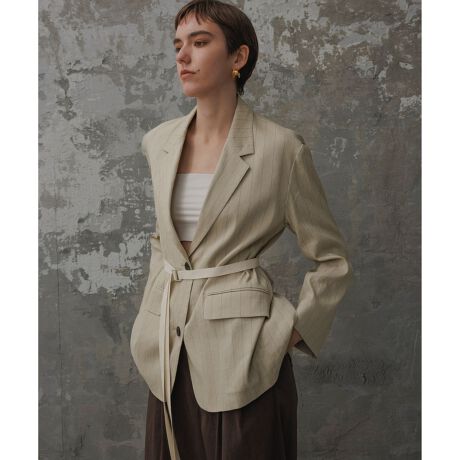 ギュっと絞って着用したり、紐を垂らしてストンと着たり、シャツ感覚で気軽に羽織れるジャケット。