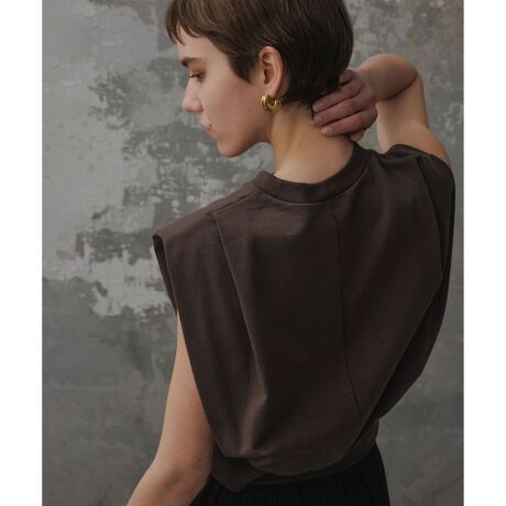 スリーブレスでバックのタックがポイントの裏毛プルオーバー。