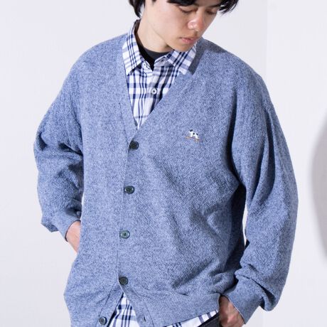 【GLOSTER/グロスター】フレンチブルドッグ刺繍 リネン混 カーディガン Vネック