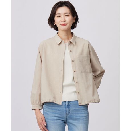 ■デザイン羽織としても、1枚着としても活躍する着回し力の高いシャツブラウス。コンパクトな丈感が今年らしい軽やかさを演出し、取り入れるだけで旬のバランスに仕上がります。裾にはドロストコードを施し、絞ることでふんわりと丸みのあるシルエットにアレンジ可能。気分や合わせるボトムスによって印象を変えて楽しめる1枚です。スカートやワイドパンツとも好相性な着丈で、コーディネートがすっきり決まるのも嬉しいポイント。シャツのきちんと感に加え、ブルゾンのような軽快さもあり、オンオフ問わず活躍します。さらりと羽織れる春のライトアウターとしてはもちろん、トップス感覚で着られる汎用性の高さが魅力で、クローゼットに1枚は持っておきたいアイテムです。