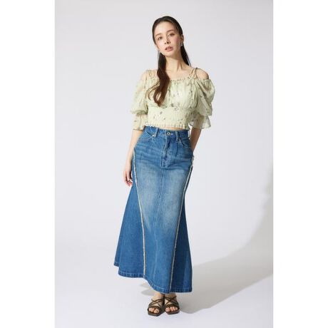 【大人の洗練スタイルに似合う品の良さが魅力のフリンジマーメイドスカート】■ポイント広がりを抑えたマーメイドロングシルエットで、大人らしいスタイリングに。ウエスト周りはスッキリ見せて膝あたりから裾に向かって緩やかに広がる上品なメリハリのあるシルエットがこだわりのポイント。後ろに入った深めのスリットで歩きやすい1着です。切り替え部分にフリンジをあしらうことで、縦のラインが強調されスタイルアップ効果を発揮。■ディテールメリハリのあるマーメイドシルエットと、今年らしいフリンジデザインがポイントです。■スタイリングトップスやシューズの丈をあまり選ばず合わせやすい1着。レーストップスを合わせると今年らしく着用いただけます。足元はブーツから、スニーカーまで幅広く合わせていただけます。■生地・加工透け感:なし裏地:なし伸縮性:なし光沢感:なし厚さ:中肉程よい厚みと柔らかさを兼ね備えた12.75ozデニム生地を採用し、快適な履き心地と上質な風合いを実現しました。【BLU】リアルなUSED加工を施し、ヴィンテージ感のある表情に仕上げました。濃淡のある色合いが立体感を生み出し、洗練された上質な印象を与えます。【BRN】生地本来の風合いを活かし、製品染めであえてラフに仕上げることで、カジュアルな雰囲気を演出。大人が取り入れやすい落ち着いたブラウンは、今期のトレンドカラーです。デニムならではの表情を楽しみながら、カジュアルからシックなスタイルまで幅広く活躍するアイテムです。■商品のお気に入り登録お気に入りアイテムの再入荷・在庫1点などの通知を受け取ることができます。[注意事項]※画像の商品はサンプルです。実際の商品と仕様、加工が若干異なる場合があります。※画像の商品は光の照射や角度、お使いのモニター環境により、実物と色味が異なる場合がございます。※着用、お取り扱いの際は、アテンションタグをご確認ください。