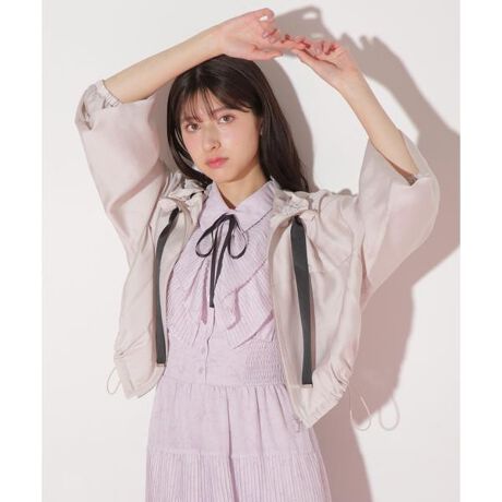 光沢感とほんのりシボ感のあるシアー素材を使ったライトブルゾン。フードまわりのフリルと配色リボンがポイントで、顔まわりを華やかに見せてくれます。袖口にゴムが入っているので袖丈の調節がしやすいです。裾はドローコードを絞ると、ぱふっとしたシルエットにアレンジ可能。JILL by JILL STUARTでご用意しているボトムスやワンピースとバランスが取りやすい短丈デザインです。※撮影時照明の関係により、色味が違って見える場合がございます。またパソコン・スマートフォンなどの環境により、若干製品と画像のカラーが異なる場合もございます。予めご了承ください。商品の色味は、商品単品画像をご参照下さい。※商品画像はサンプルのため、色味やサイズ等の仕様に変更がある場合がございますので、予めご了承ください。