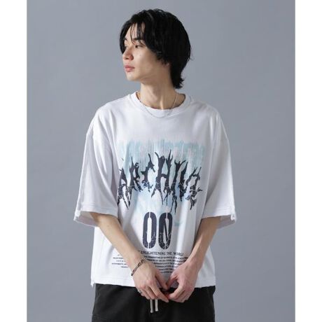 目を惹く印象的なグラフィックデザインをプリントしたカットソー。