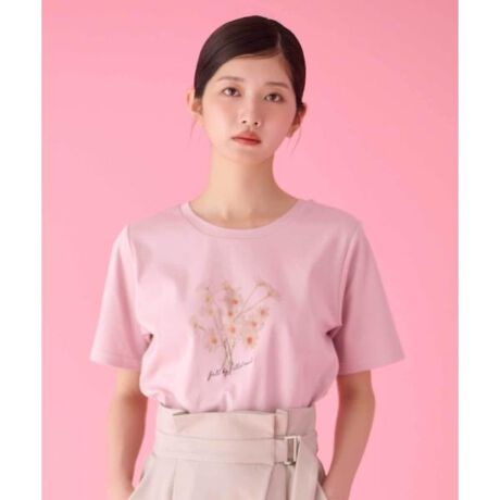 アート風のフラワープリントが映えるTシャツ。マーガレットの花柄にほぐし加工を加えてアート風プリントに仕上げたデザインです。筆記体のロゴ刺しゅうも入れて存在感をプラス。透けにくくストレッチの効いた、柔らかいスムースカットソー素材を使用しています。スカートもパンツも合わせやすいので1枚もっているとTシャツコーデの幅が広がります。※撮影時照明の関係により、色味が違って見える場合がございます。またパソコン・スマートフォンなどの環境により、若干製品と画像のカラーが異なる場合もございます。予めご了承ください。商品の色味は、商品単品画像をご参照下さい。※商品画像はサンプルのため、色味やサイズ等の仕様に変更がある場合がございますので、予めご了承ください。