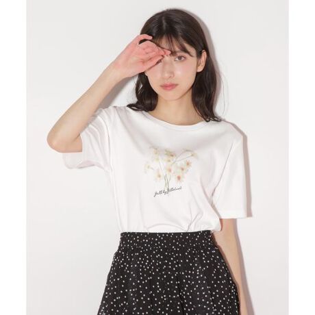 アート風のフラワープリントが映えるTシャツ。マーガレットの花柄にほぐし加工を加えてアート風プリントに仕上げたデザインです。筆記体のロゴ刺しゅうも入れて存在感をプラス。透けにくくストレッチの効いた、柔らかいスムースカットソー素材を使用しています。スカートもパンツも合わせやすいので1枚もっているとTシャツコーデの幅が広がります。※撮影時照明の関係により、色味が違って見える場合がございます。またパソコン・スマートフォンなどの環境により、若干製品と画像のカラーが異なる場合もございます。予めご了承ください。商品の色味は、商品単品画像をご参照下さい。※商品画像はサンプルのため、色味やサイズ等の仕様に変更がある場合がございますので、予めご了承ください。