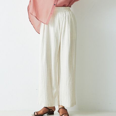 【セットアップ対応】レーヨンリネンストライプラップパンツ