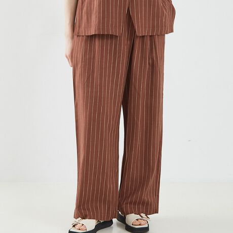 【セットアップ対応】レーヨンリネンストライプラップパンツ