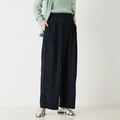 【セットアップ対応】レーヨンリネンストライプラップパンツ