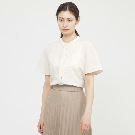 バンドカラーで襟元をすっきりとさせつつ、前立てはヒヨク仕立てのエレガントなデザインにしました。