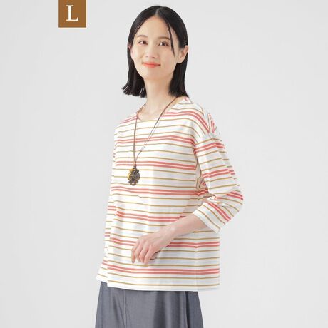 【L】【ウォッシャブル】ジャカードボーダーシルケット プルオーバー