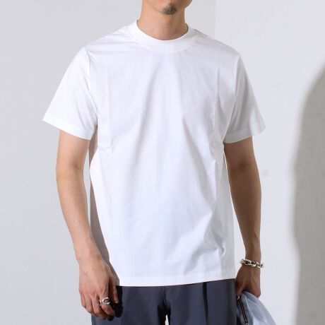 特徴的なネックデザインは、クルーネックの後襟にかけてリブを高くしており、首の後ろに触れるジャケットの襟裏に皮脂汚れが付きにくい絶妙なネックバランスに仕上げています。
