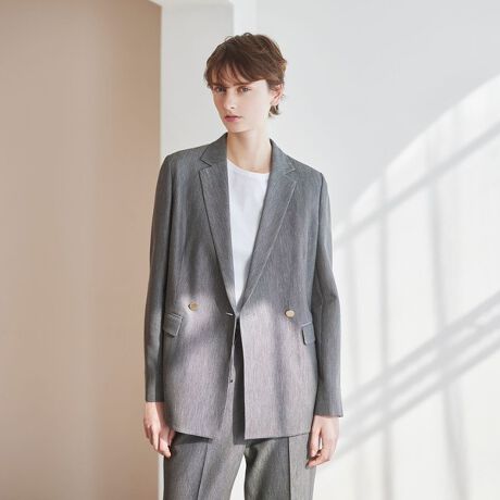 <カーディガン感覚で軽く羽織れるダブルジャケット>