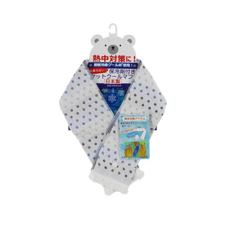 【暑さを可愛く乗り切る相棒】接触冷感作用で、ひんやり快適☆暑い季節に大活躍の「ボタン付き保冷剤ポケットマフラー」。【触った瞬間冷たい!クール糸(R)】表面に触れると熱が素早く拡散し、冷たく感じる!熱伝導の原理を利用した特殊な糸を織り込み。【動いてもズレにくいボタン付き】首に掛けて、パチンっと留められる仕様。お子さまの通学やスポーツシーンに!【熱中症対策や冷房の補助アイテムに】屋外シーンや寝苦しい夜の安眠グッズとして。エアコンや扇風機の補助使いも。【アレンジすると一層クールに】水に浸したり、ポケットに付属の保冷剤をIN。冷感効果がもっと高まる!【丸洗いできてお手入れラクラク】汚れや汗が気になったら、ネットに入れて洗濯機洗い可能。いつも清潔をキープ◎(※1)洗濯機の弱モード推奨です。【気分も上がるナチュラルデザイン】主張しすぎないカラーリングと、可愛らしいデザイン。ギフトにもおすすめの日本製。≪ダイヤ/ペンギンシリーズ≫【2つの糸使用◎ダブルで冷たい】クール糸(R)とレーヨン糸、2つの接触冷感作用のある糸を使用。冷たさがさらにアップ。(※2)カラーにより、素材が異なります。ダイヤ/ペンギンはレーヨンを使用しております。