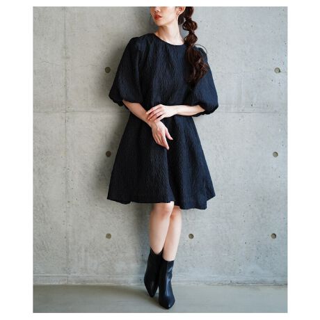 大人フェミニンなバックリボンパフスリーブジャガードワンピース。ぽこぽこと凹凸のあるジャガードデザインが目を惹く1枚。ボリューム感のあるバルーンスリーブが華やかな印象に。ウエスト部分は切り替えデザインになっておりスタイルアップ。バックリボンのデザインが大人フェミニンな雰囲気をプラスしてくれます。