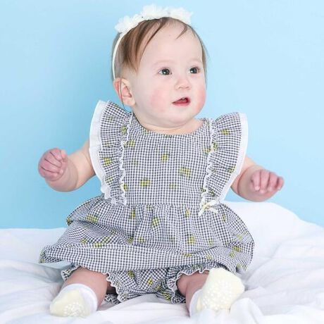 【お揃い】イチゴレモンフルーツ柄チェック切り替えワンピース+ブルマセットアップベビー(70~80cm
