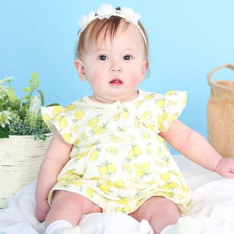 【お揃い】アイスチェリーレモン総柄フリル袖ロンパースベビー(60~80cm)