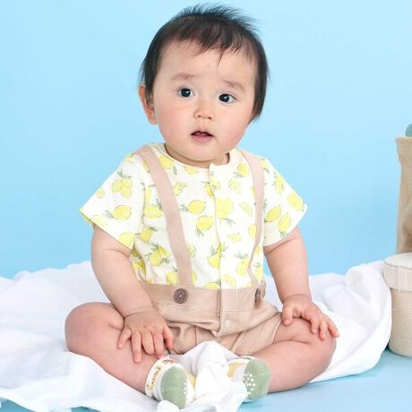 スナップボタンで全開になるので、首が座る前の赤ちゃんに着せやすく、新米ママにもおすすめ!
