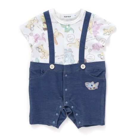 サロペットをドッキングした半袖ロンパース。