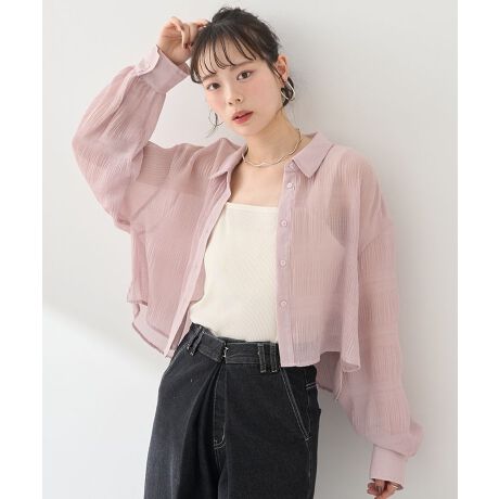 25SS レディース 夏 長袖 クロップド丈 骨格 ゆったりシルエット 体型カバー シャツ シアー 透け感 さらさら デイリー おでかけ 旅行 オフィス シンプル 大人カジュアル フェミニン 10代 20代 30代 40代 50代 着回し 上品 おしゃれ アース マジョリカ 定番 人気シリーズ おすすめ