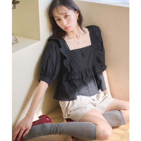 着用するだけでスタイリングが華やぐフェミニンな印象のブラウス。フリルやパフスリーブの甘めなデザインを爽やかなコットン素材に落とし込んだ季節感たっぷりの1枚です。スクエアネックがデコルテ周りをきれいに演出。コンパクトなシルエットでボトム合わせしやすく、デイリーに活躍してくれるおすすめのアイテムです。