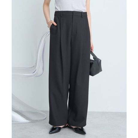 左右にタックを効かせたコクーンシルエットが美しいデザインパンツ。上質感のあるテキスタイルは肌離れもよく、春夏シーズンにも快適にご着用いただけます。ウエスト内側のアジャスト機能でサイズの調整が可能。ベーシックなワンカラーで幅広いトップスに合わせやすいおすすめのアイテムです。透け感[なし]