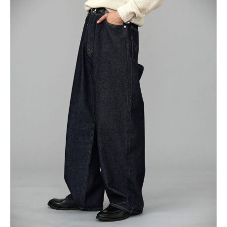 90年代のアメリカのバギージーンズをベースに、現代的なワイドストレートシルエットを構築。存在感のあるルーズなシルエットは、トレンド感を演出しつつ幅広いスタイリングに活躍します。