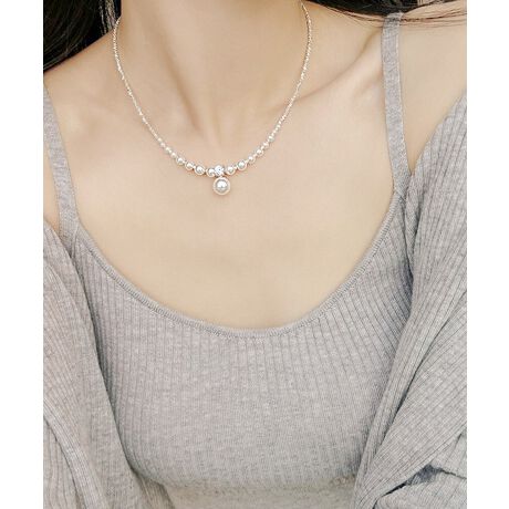 小粒のパールが首元を美しく飾り、中央に配されたビジューと一粒パールが華やかさをプラス。
