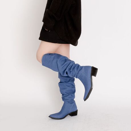 ポインテッドトゥ ワイドシャフト シャーリング ニーハイブーツ