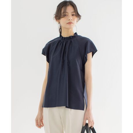 ■デザインフリルハイネックのラグランフレンチスリーブは1枚で着映えが叶います。ジャケットインやレイヤードアイテムとして着回し抜群のブラウス。インしてスカートスタイルにも、裾にスリットも入っているのでアウトしてパンツスタイルにもおすすめです。スタンドフリル襟からのギャザーは程よく身体から離れ、袖はフレンチスリーブなので気になる二の腕もカバーしてくれます。