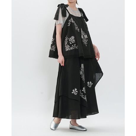 [型番:VE0051]◆ シーズンムード満載のひと品 ◆刺繍が特徴の重ね着風スカートです。シンプルなデザインですがインドならではの刺繍がポイントになってくれます。重ね着風に見えるスカートはコーディネートをワンランクアップさせてくれます。Tシャツなどと合わせるのはもちろん、同シリーズのキャミとの相性も抜群です◎model:H165