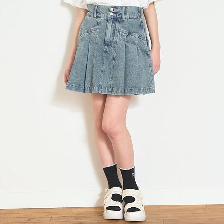 切り替えデザインとウエストのWボタンが美脚見えするポイントのスカートです。