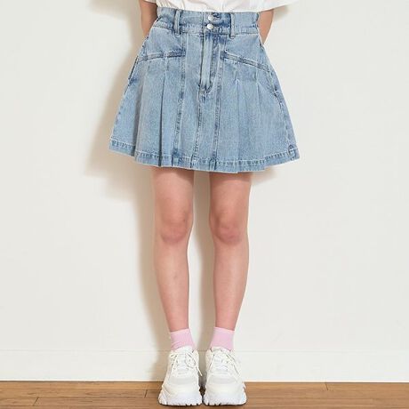 美脚見えデニムプリーツスカート