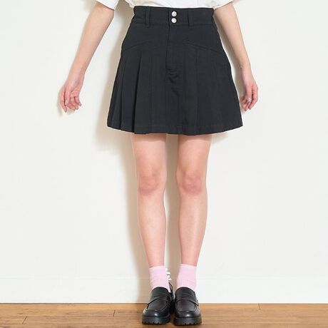切り替えデザインとウエストのWボタンが美脚見えするポイントのスカートです。
