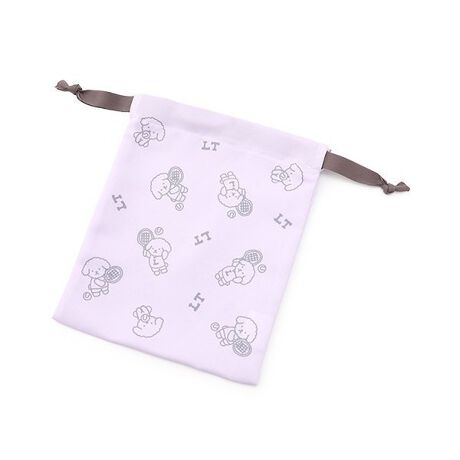 部活動を楽しむ犬の総柄プリントが個性的な巾着です。
