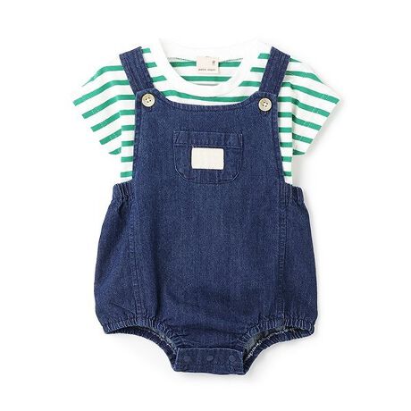 涼しげな色味のボーダーとデニム地で仕立てたサロペットが相性抜群のセットアップです。