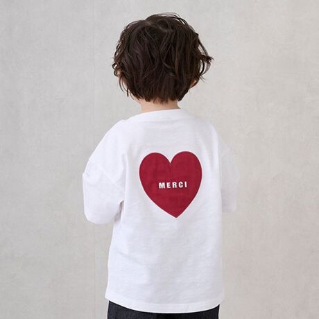 バックは大きなハートとMERCIのロゴ刺しゅうで、後ろから見てもインパクトのある一枚。
