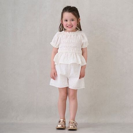 ギャザー仕様のトップスは着脱も簡単で、お子さま自身でお着替えしやすいのもうれしいポイント。