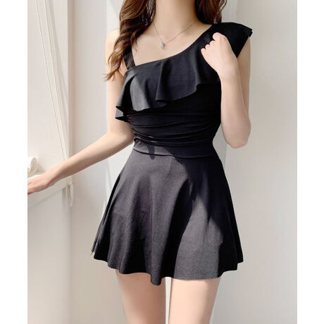 アシンメトリーワンショルダーワンピース水着 体型カバー