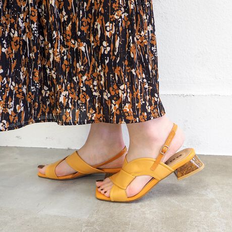 また、エッジの効いたヒールデザインもポイント。後ろ姿まで抜かりなしの一足です。
