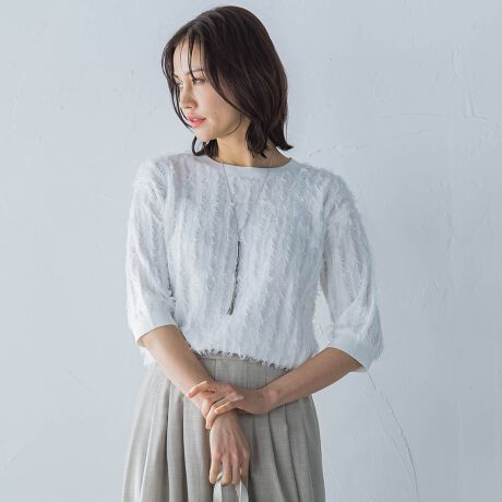関連ワード:LAUTREAMONT ロートレアモン レディース 大人カジュアル きれいめカジュアル ナチュラル きれいめ キレイめ 上品 シンプル ベーシック 通勤スタイル オフィスカジュアル キャリア オフィススタイル 2025春夏 春 春服 ニット コットン ナイロン 無地 ハイゲージ フリンジ