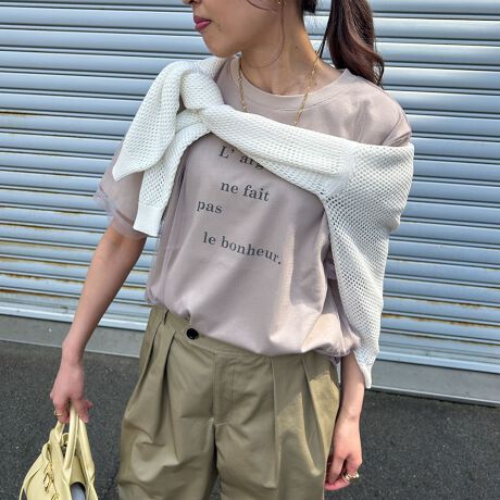 チュールの透け感がロゴを引き立て、1枚でこなれ感のあるスタイリングが完成するアイテムです。 気温15度~20度におすすめ
