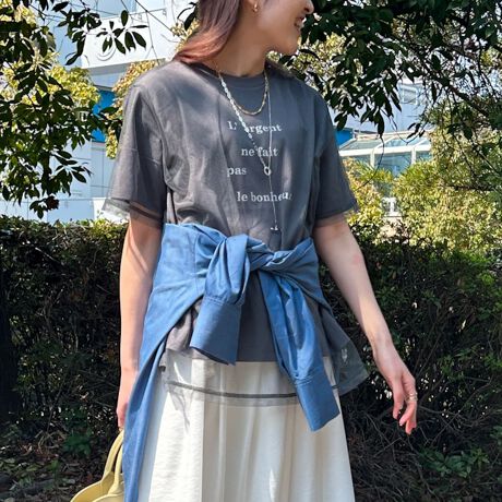チュールの透け感がロゴを引き立て、1枚でこなれ感のあるスタイリングが完成するアイテムです。 気温15度~20度におすすめ