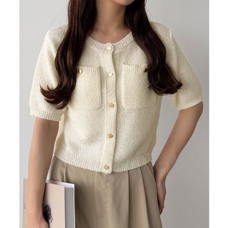 callautia ハートボタン半袖ニットカーディガン
