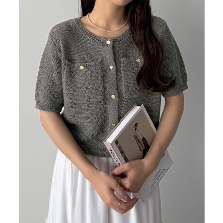 callautia ハートボタン半袖ニットカーディガン