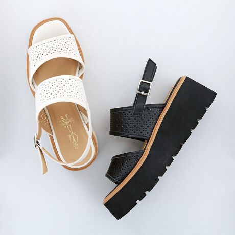 あしながおじさんで人気の厚底ブーツサンダルと同じ柄のパンチングを施したセパレートサンダル。透け感のあるパンチングは見た目にも涼し気です。