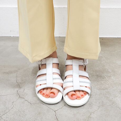 微厚底のソールは足の動きに合わせてしっかり屈曲するので歩行がとてもスムーズで、まるで裸足で歩いているよう。自然体で歩けます。