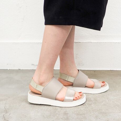 かかとはやわらかなゴム製ベルトで着脱スムーズ。足に合わせて伸縮するゴムベルトは締め付け感がなく、やさしくフィット。普段使いから旅行などのイベントにも活躍しそうな1足です。