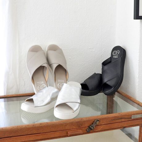 足元がすっきり見えするクロスデザインは、甲全体を深く包み込むので安定感も◎ やわらかでストレスのない履き心地で、夏の定番アイテムになりそう。