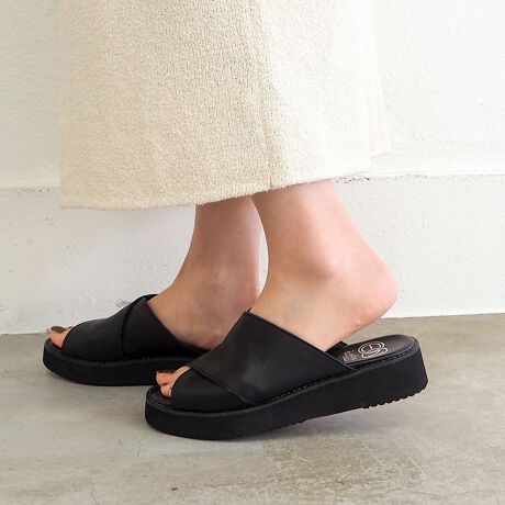 手を使わずにサッと履ける、つっかけスタイルのミュールサンダル。シンプルでリラクシーなデザインは、コーデを選ばずに履き回せます。